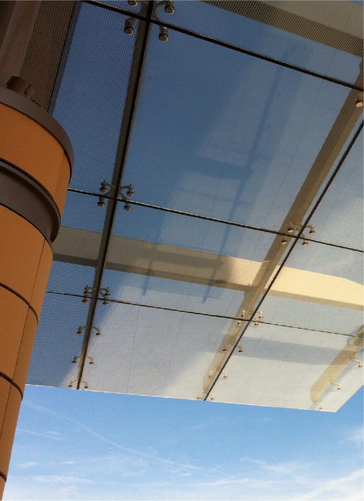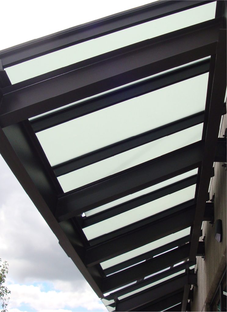 of materials such as mild steel, stainless steel or aluminium. Glass canopies are used in